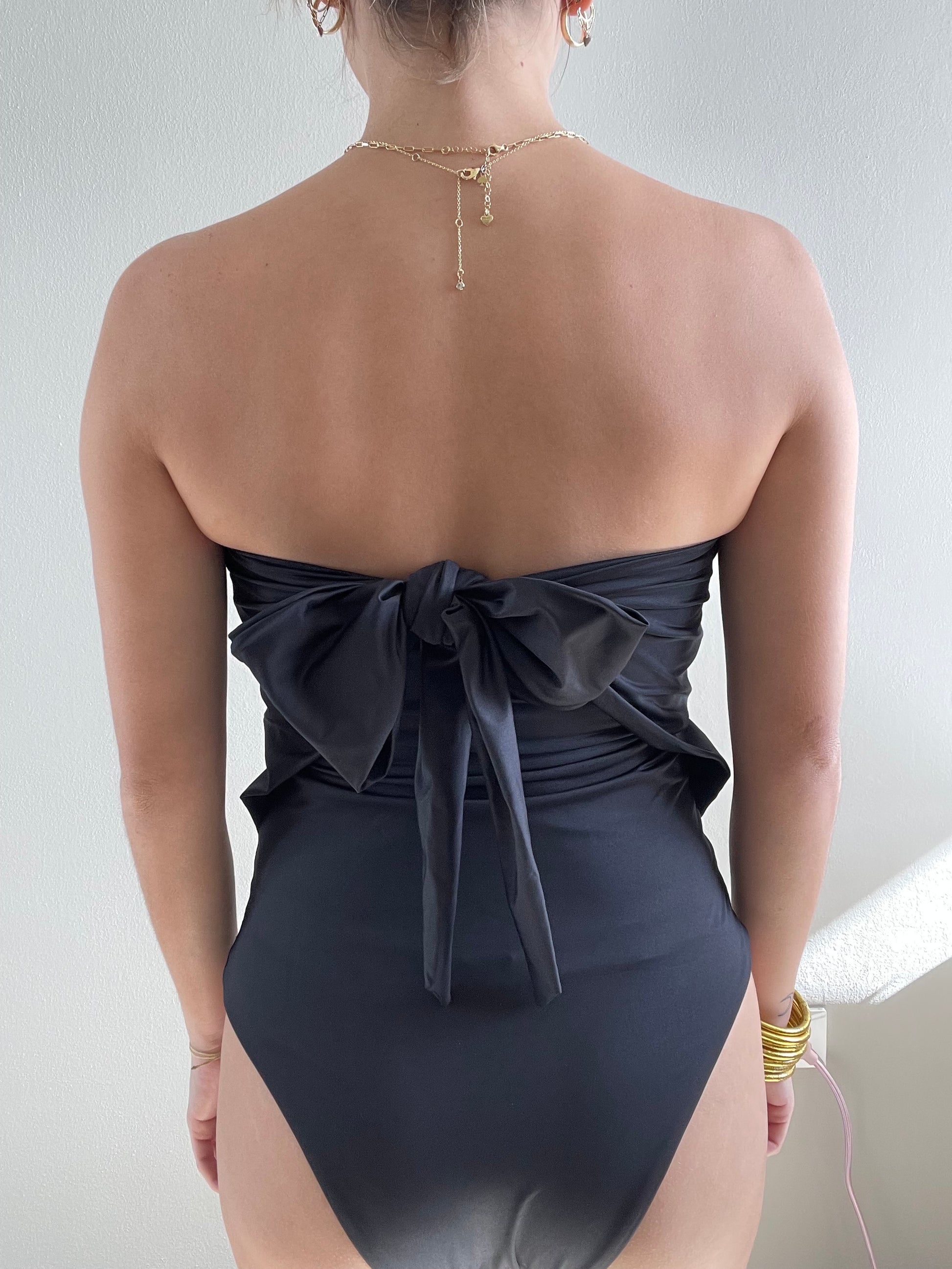 Traje de baño entero ideal para lucir en la playa o como body. Tela satinada suave al tacto, con proteccion UV, brinda una cobertura media y cuenta con copas removibles.